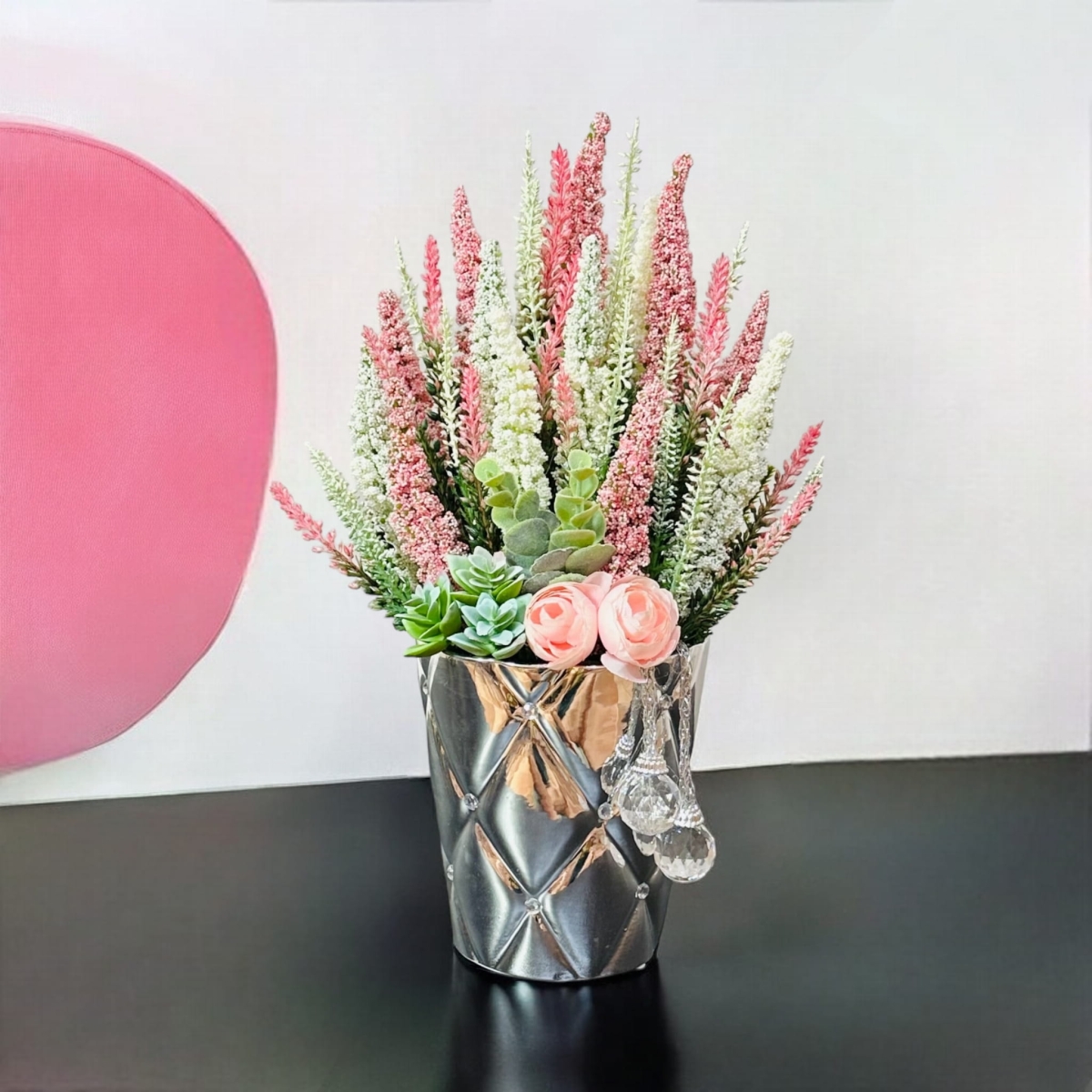 Co sprawia, że nasza kompozycja jest wyjątkowa? Możliwość personalizacji! Oferujemy różne modele doniczek, dzięki czemu każdy klient może stworzyć unikalną aranżację idealnie dopasowaną do swojego wnętrza. To doskonała okazja, aby wyrazić swoją kreatywność i uczynić przestrzeń jeszcze bardziej wyjątkową.