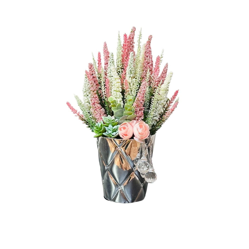 Kompozycja z wrzosów w ceramicznej doniczce
