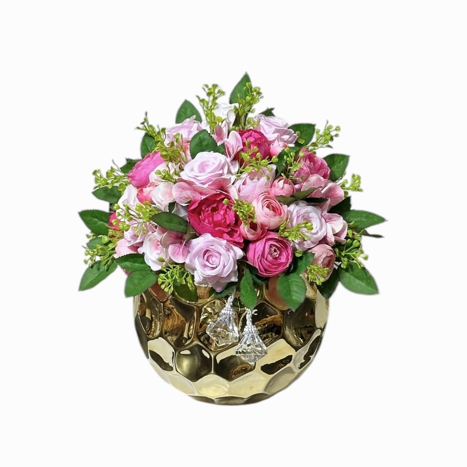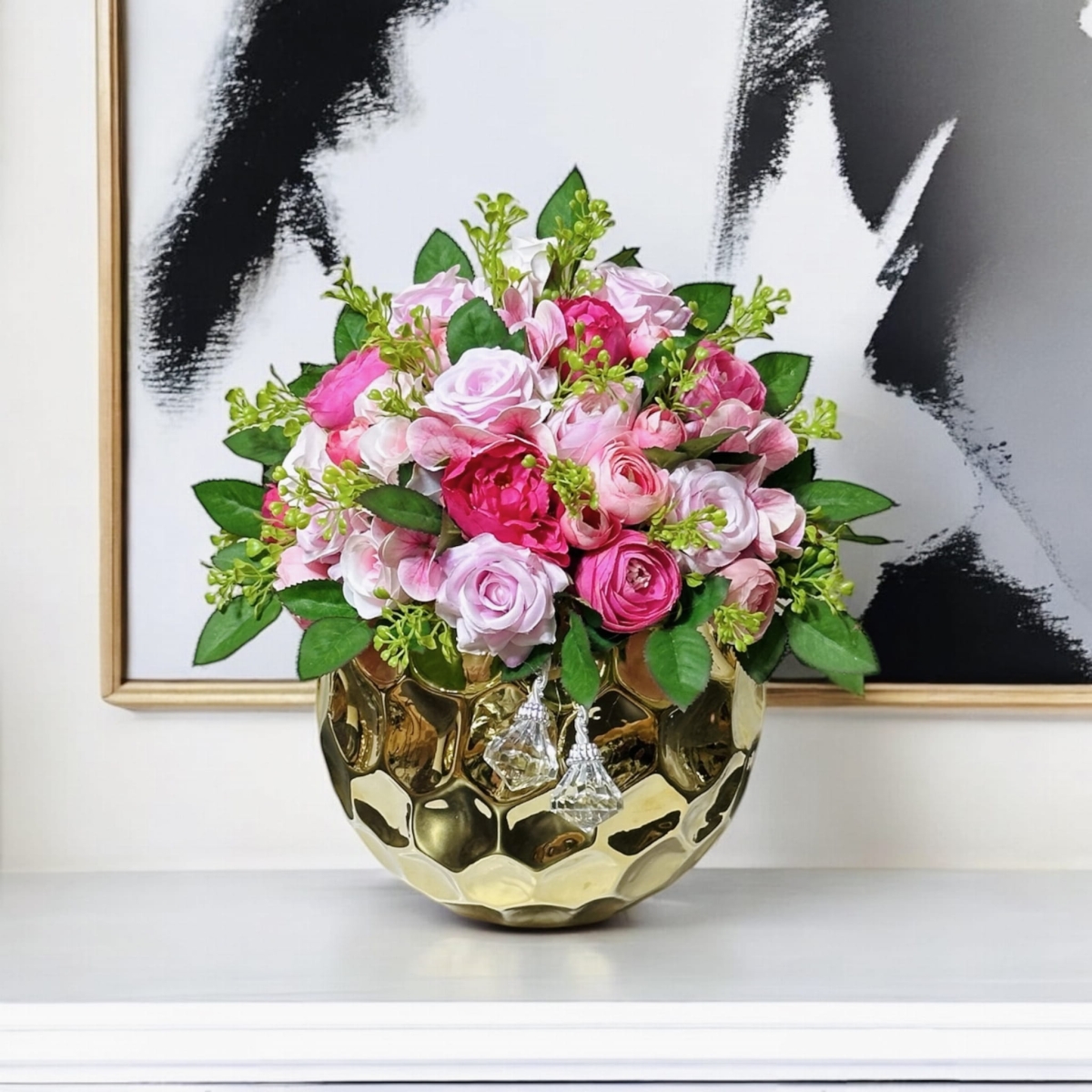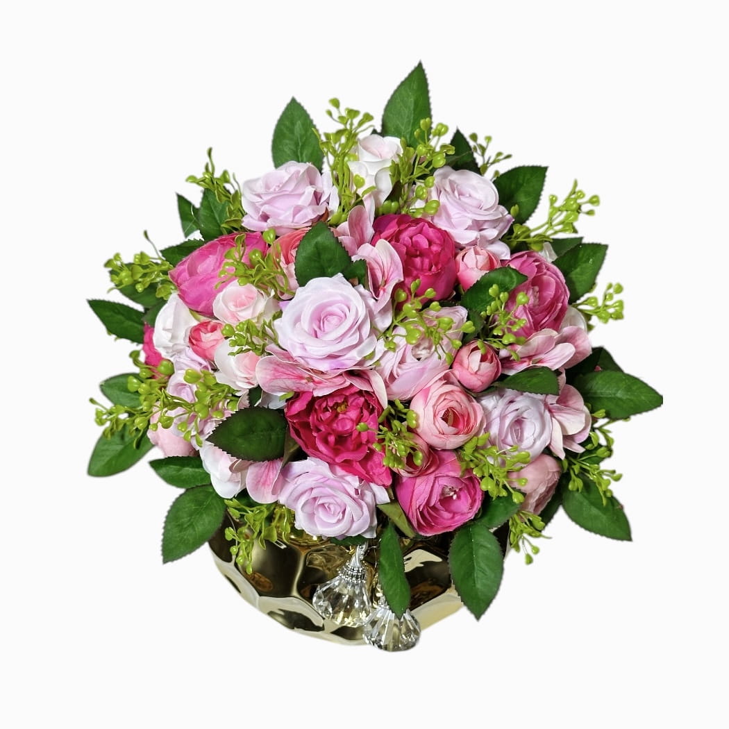 • Kompozycja kwiatowa wykonana z wysokiej jakości kwiatów sztucznych