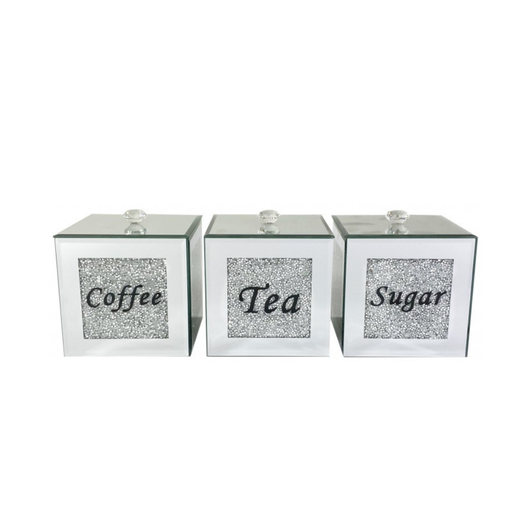 Eleganckie pojemniki na kawę, herbatę i cukier.