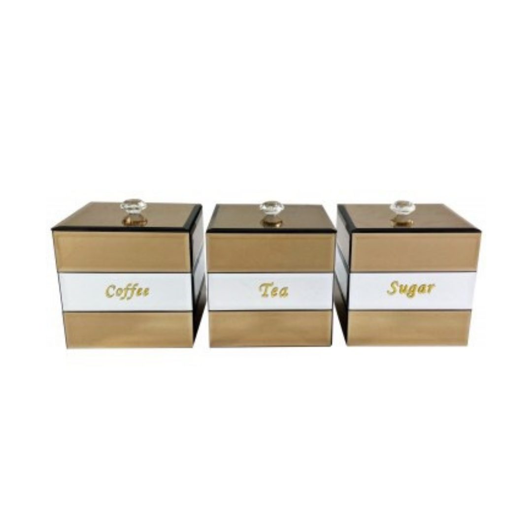 Eleganckie pojemniki na kawę, herbatę i cukier.
