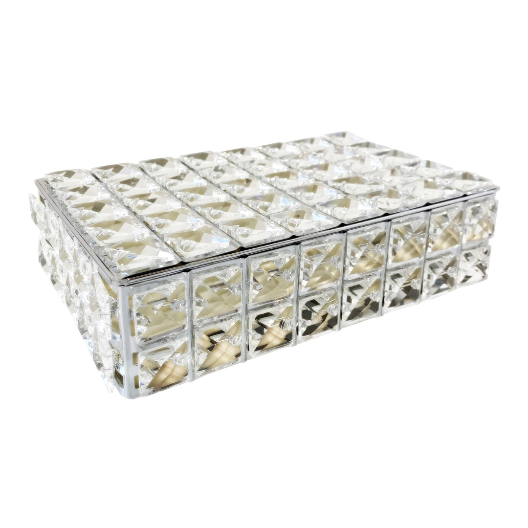 Elegancki szkatułka wykonany z kryształów. Wnętrze szkatułki wykonane jest z jasnego weluru.