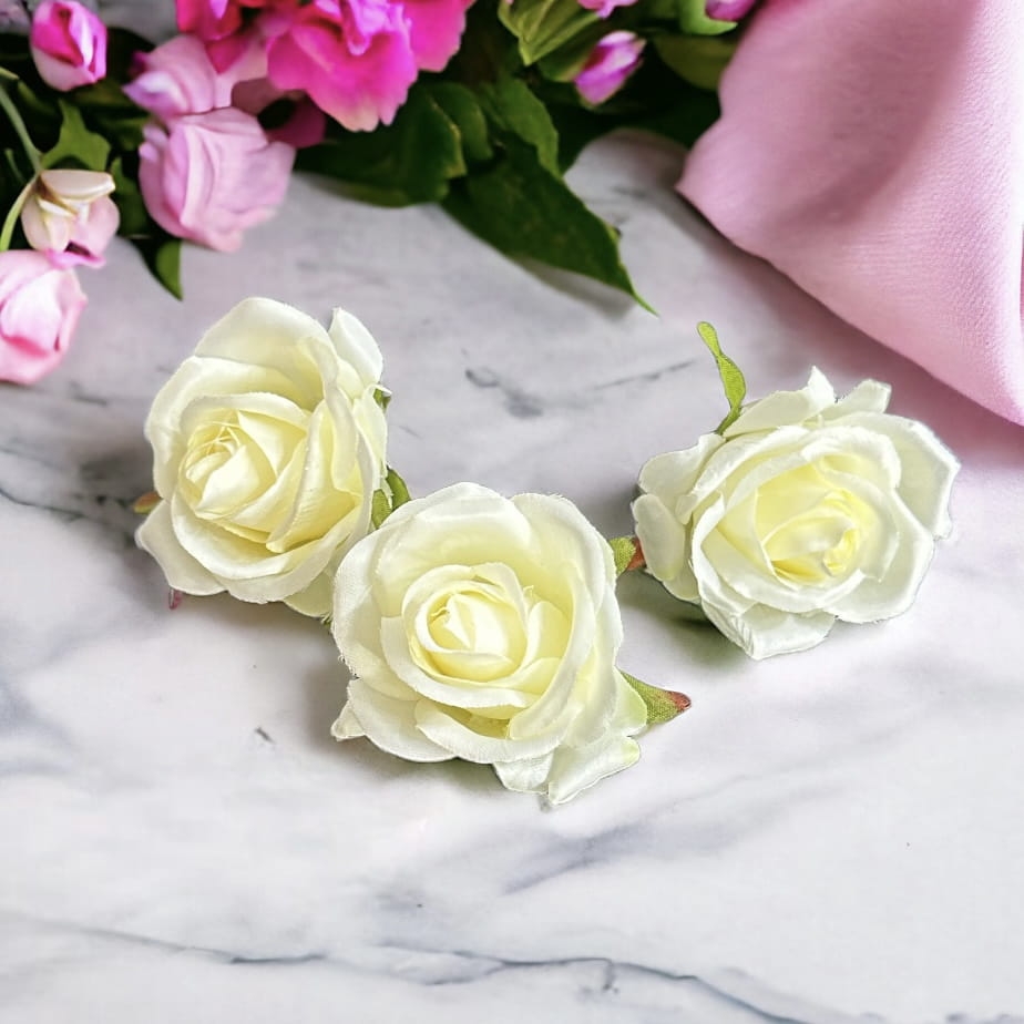 Sztuczna róża główka biała 12szt