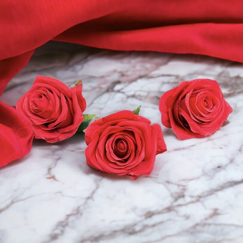 Sztuczna róża główka czerwona 6szt