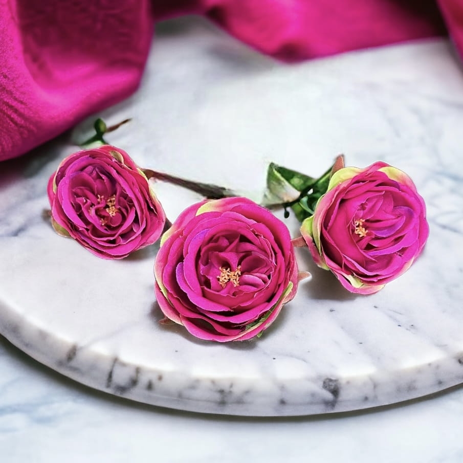 Sztuczna róża główka fuksja 6szt