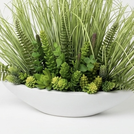 Sztuczna trawa z sukulentami w doniczce