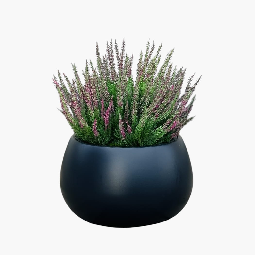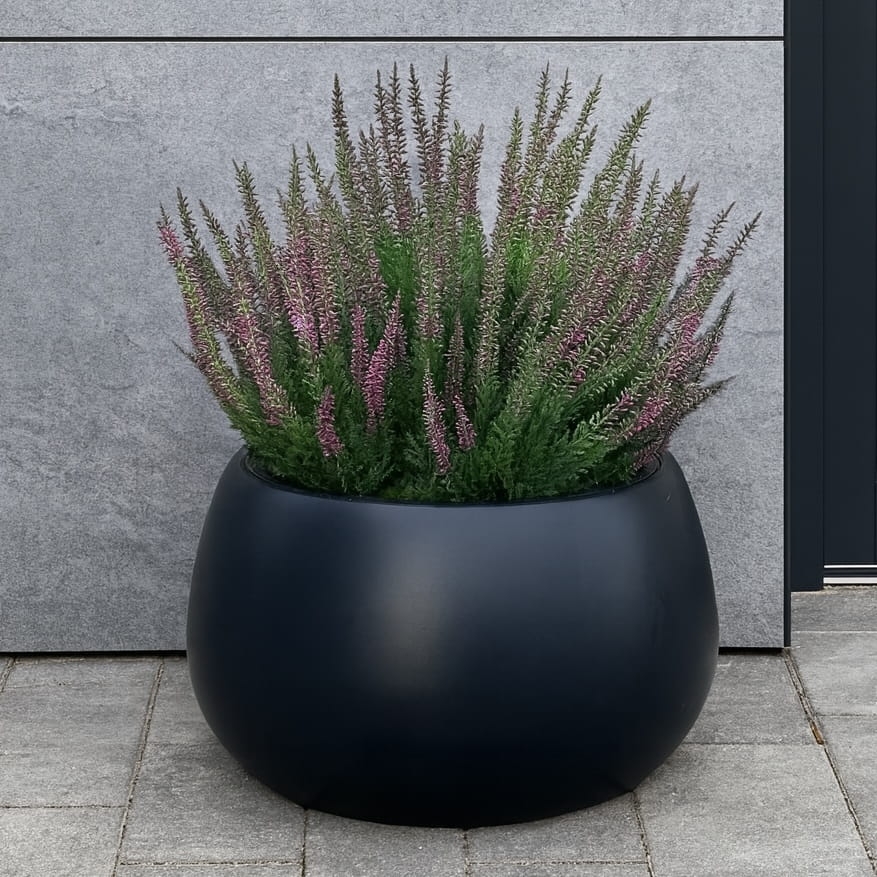 Naturalny urok wrzosów w połączeniu z elegancką donicą tworzy ponadczasową ozdobę, która wprowadza jesienny klimat i podkreśla charakter przestrzeni.
